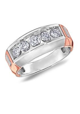 Diamaison Men S 1 Ct T W Diamond Five Stone Wedding Band In 14k Two Tone Gold Belk